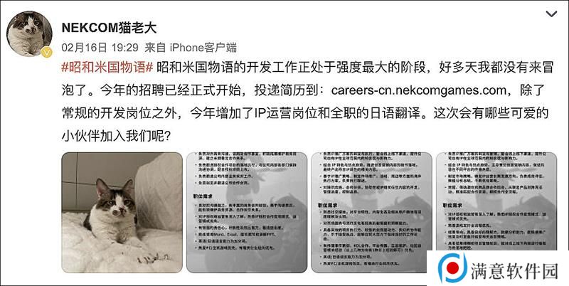 近日,《昭和米国物语》的制作总指挥,创意总监NEKCOM猫老大,在社交媒体上发布了一条重要消息:目前,游戏的开发工作正处于强度最大的阶段。这意味着团队正在全力以赴地完善游戏的各项细节,确保最终能够为玩家呈现出一款高质量的作品。同时,为了支持这一紧张而关键的开发进程,公司发布了新的招聘启事,不仅寻求常规开发岗位的人才加入,还特别增加了IP运营岗位以及全职的日语翻译职位。