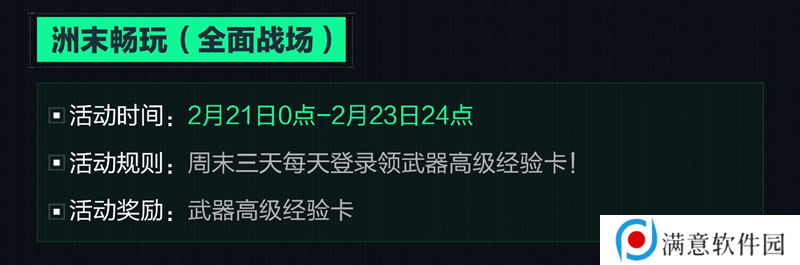 活动规则: 周末三天每天登录领武器高级经验卡!