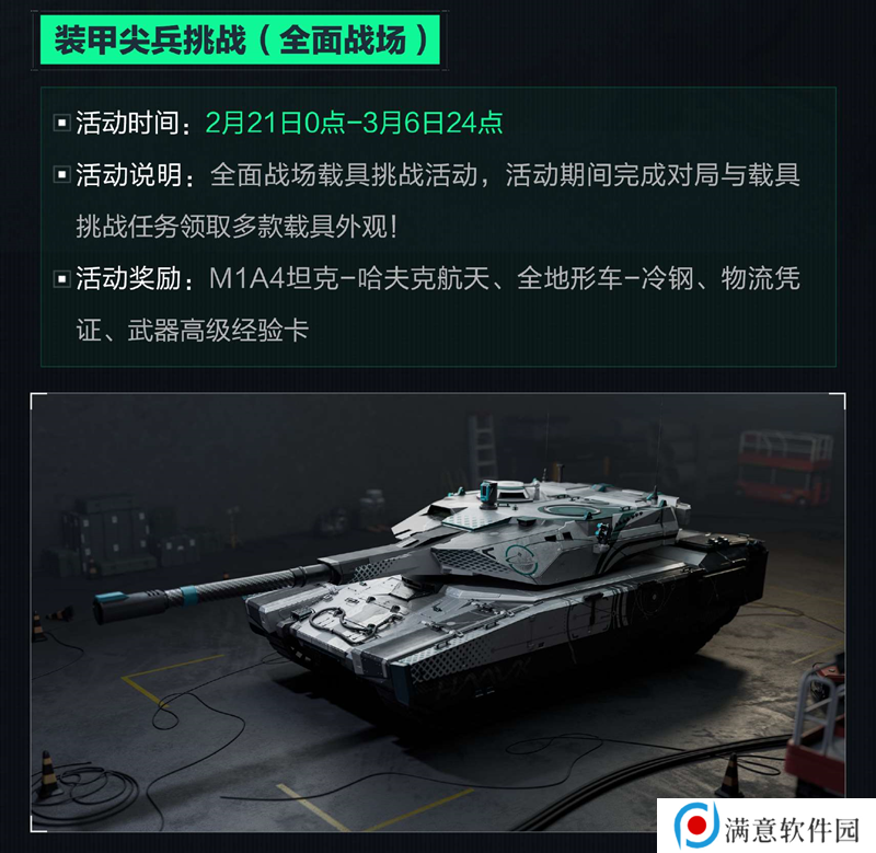 活动奖励: M1A4坦克-哈夫克航天、全地形车-冷钢、物流凭证、武器高级经验卡