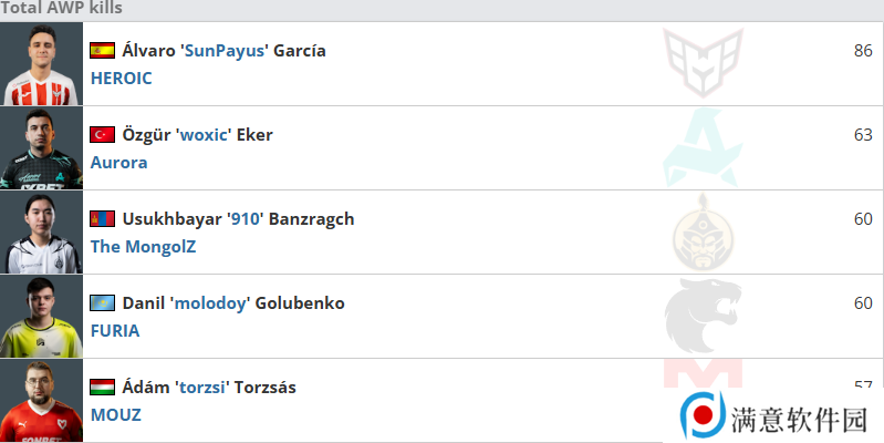 MOUZ战队选手torzsi和Spinx包揽前二,