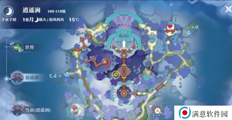 13.逍遥涧奇石:半山腰平台上的石堆(古怪的石碑),点击解开谜题(将圆珠放到左右对称的位置)即可获取奖励。