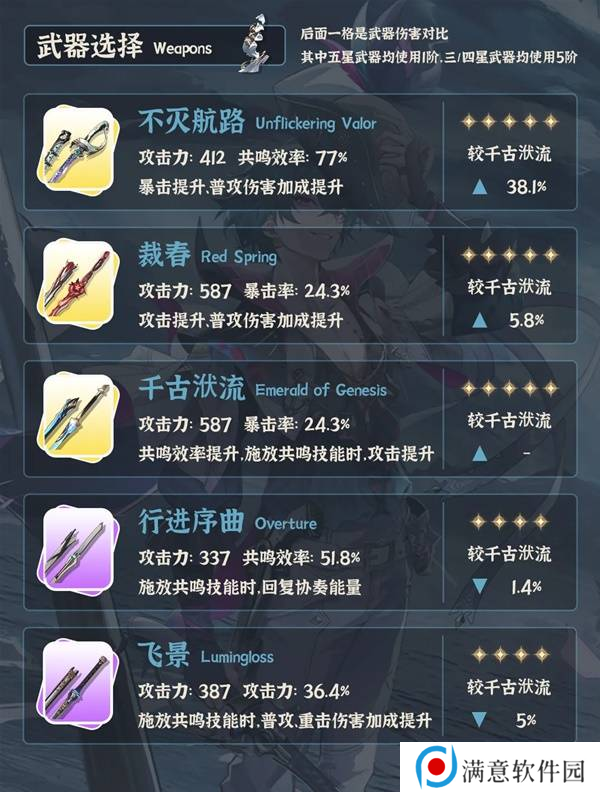 布兰特声骸首选无惧浪涛之勇,吃满自身BUFF需要280%共鸣效率,吃满声骸套装效果需要250%共鸣效率,因此使用专武或行进序曲共鸣效率需要达到250-280%之间最佳,C3根据副词条情况携带一共鸣效率或两共鸣效率。如果不抽专武,可以考虑使用轻云出月做辅助副C,帮助主C输出,不去叠高共鸣效率,选用普攻增伤武器。如果想要追求极致或者是刚进游戏,可以使用熔山裂谷,当共鸣效率能达到要求时,熔山裂谷可能更适合主C布兰特。