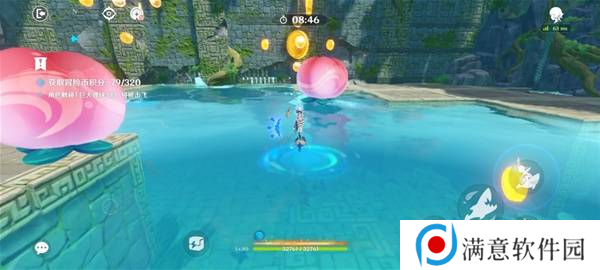 场内有巨大弹球按照规律走向来回干扰。任务提示中说我们要躲避它。其实撞到也没事,不会扣除积分,只会弹开角色影响挑战速度罢了,达到积分即可。