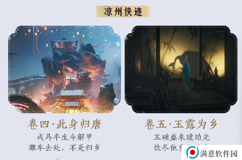 凉州,作为连接西域与中原的重要门户,拥有独特的地域风貌和人文风情。此次更新将率先解锁新的侠迹「玉露为乡」。在「玉露台」之畔,曾有一方葡萄园,居者一家三人,晨起剪枝,暮至压榨,指节皆染碧紫。然而,家人离散,只留稚女独守荒园。相传,有佳酿月光酒,取葡萄精魄,融月华而成,饮者不知他乡与故乡。异域的少女阿依奴在歌谣中讲述着故乡和至亲、传说与美酒,等待着游侠们的探索。