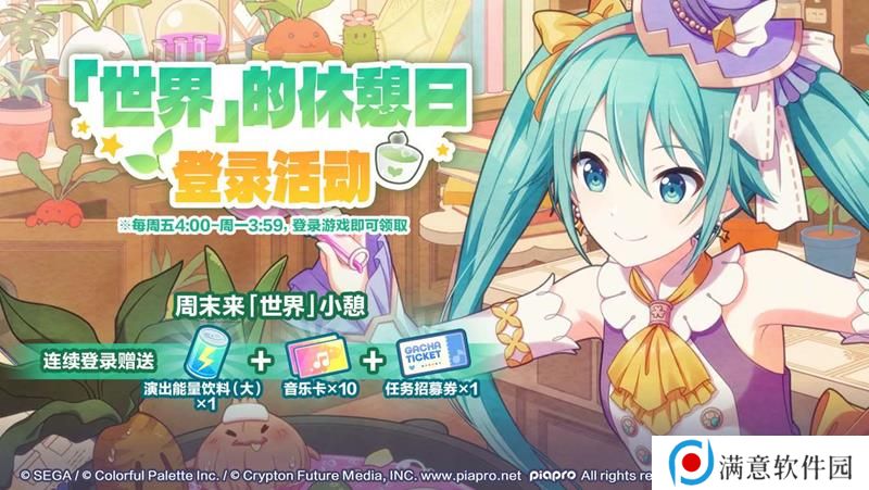 总的来说,《初音未来:缤纷舞台》的这次“世界”休憩日登录活动,不仅为玩家带来了实实在在的福利,也进一步增强了玩家与游戏之间的互动。希望玩家们能够抓住这次机会,连续登录游戏,领取属于自己的奖励,继续在《初音未来:缤纷舞台》的世界中享受音乐的魅力。