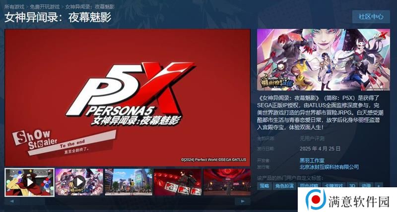 《女神异闻录:夜幕魅影》(P5X)即将登陆Steam平台,为玩家带来全新的游戏体验。这款备受瞩目的作品由SEGA授权,完美世界开发,自2024年4月12日公测以来,一直受到玩家群体的广泛关注。如今,它即将在4月25日正式上线Steam平台,为更多玩家提供便捷的游玩渠道。