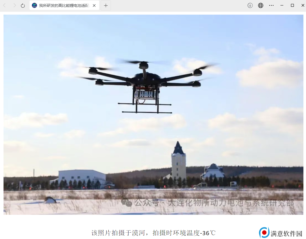 本站 3 月 16 日消息,据中国科学院大连化学物理研究所消息,由该所动力电池与系统研究部(DNL29)陈忠伟研究员团队研发的超低温高比能锂电池,适配六旋翼无人机在漠河零下 36 摄氏度极寒环境下试飞