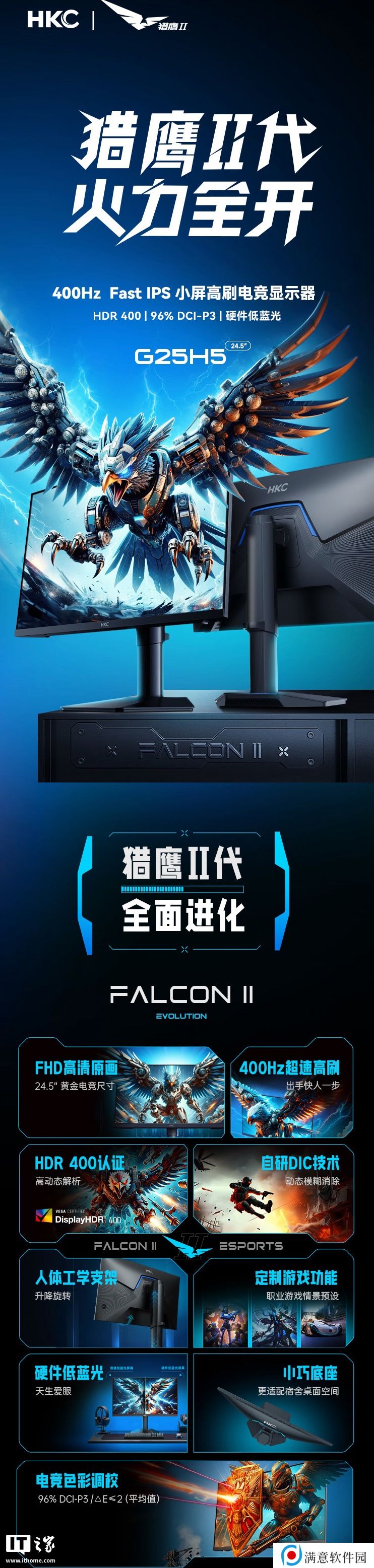 本站 3 月 17 日消息,HKC宣布推出一款型号为“G25H5”的 24 5英寸显示器,该显示器主打“1080P 400Hz(超频)”,定价为1599元,国补后1359元。该显示器配备一块 1920