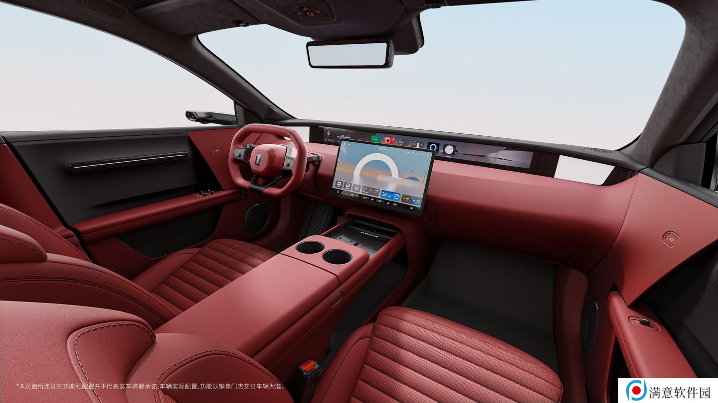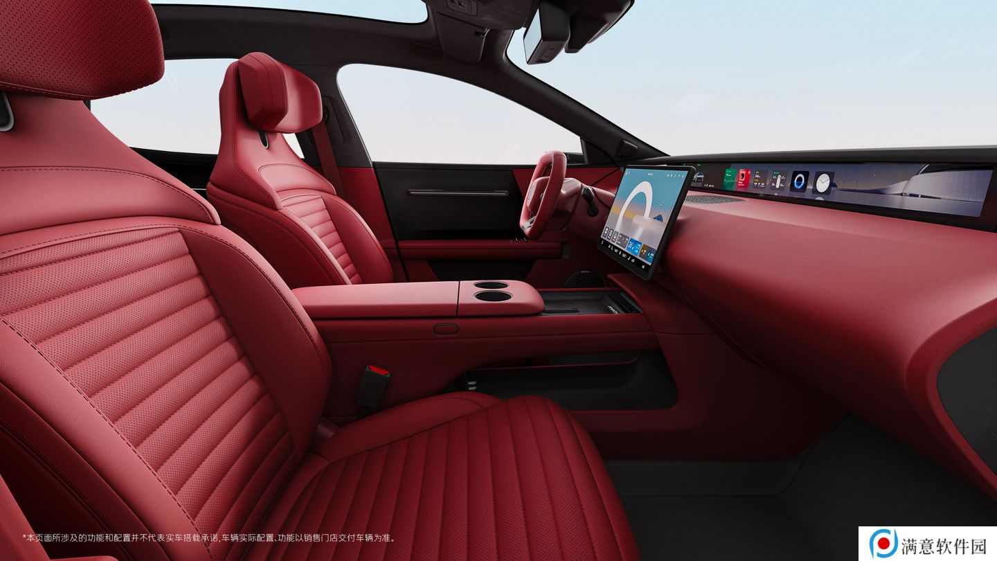新车拥有“舒压豪华座舱”,全系搭载前排电动门,支持智能防撞 / 智能悬停。新车的其他标配还包含流媒体内后视镜、英国之宝音响、双零重力座椅。其内饰采用 7㎡软包材质,可选全新的“岱红”配色。车内配备了 25 个扬声器,支持 7.1.4 全景声,输出功率可达 2016W。