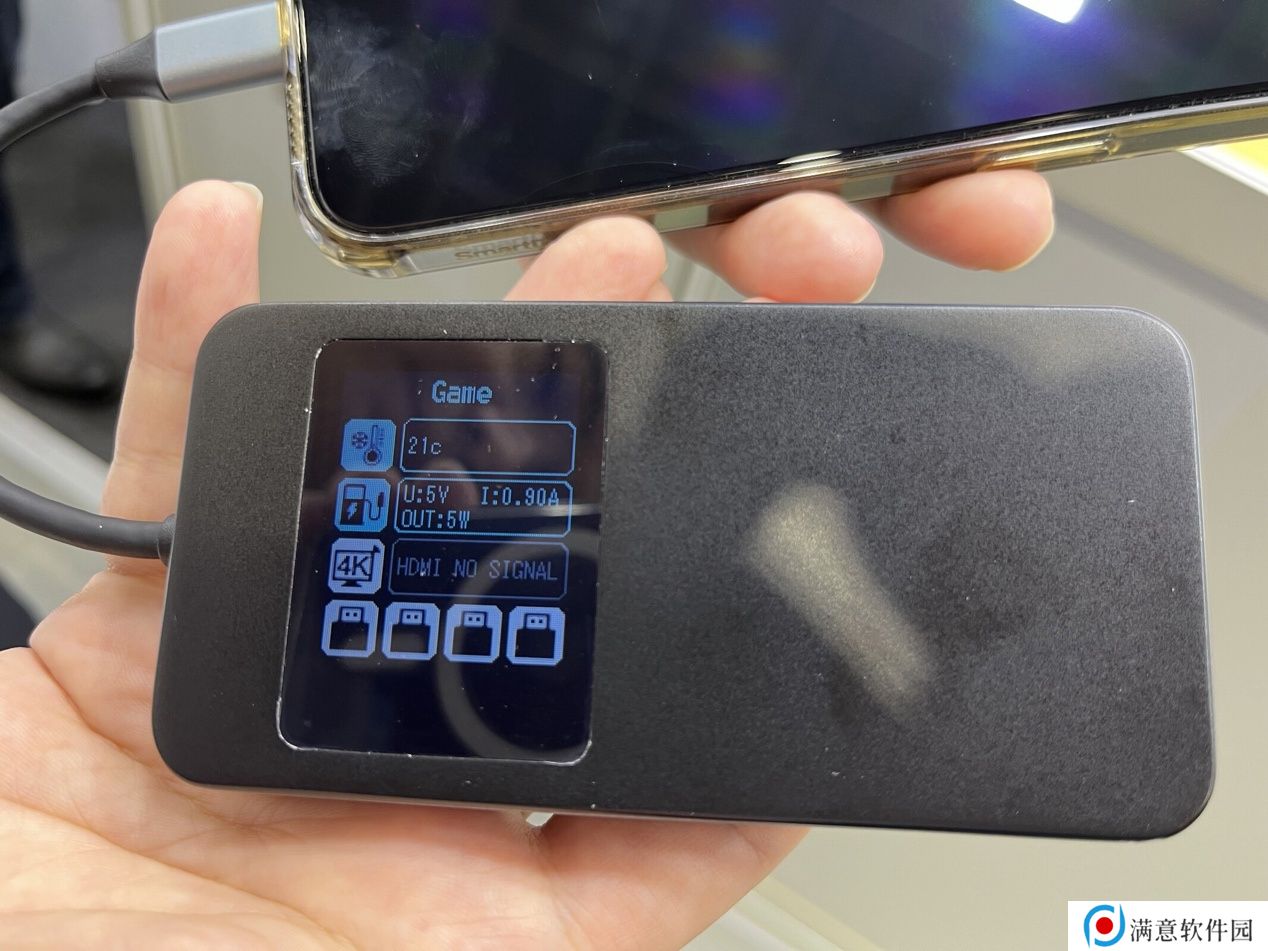根据 Wedellink 官方介绍,该扩展坞尺寸约为 10.92*6.1 cm ,自带了一块点阵显示屏,可显示扩展坞温度、充电电流 / 功率、HDMI 接口输出分辨率和 USB 接口协议版本等数据。