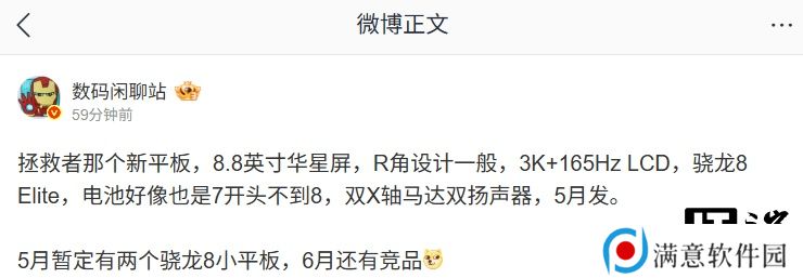 博主还在评论区回复了部分网友的问题:针对平板只有iPad和其他的言论,博主回复“iPad mini没有高刷”;针对新平板的屏幕是否为旧款屏幕,博主表示“不,这次是新屏幕,前代是 8.8"2.5K”。